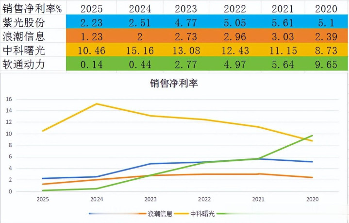 盈利能力排名为:中科曙光>紫光股份>浪潮信息>软通动力。